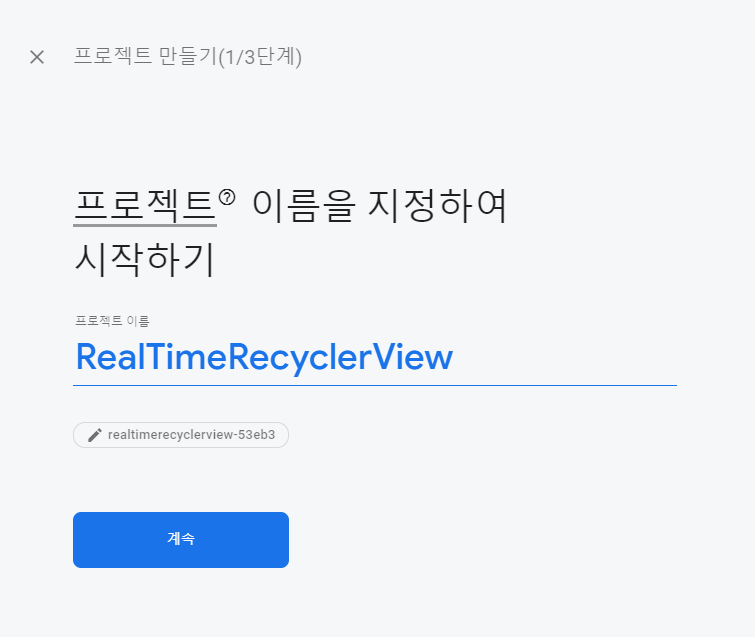 프로젝트 이름을 지정하여 계속 버튼을 클릭합니다.