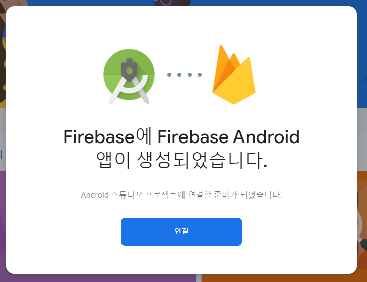 그러면 프로젝트 만들기가 완료되었습니다. 연결을 누르고 안드로이드 스튜디오로 돌아가봅시다.
